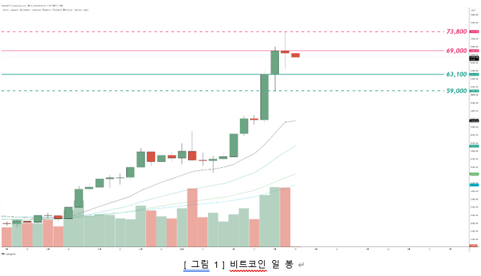 현재 비트코인 시장은 여러 가지 신호를 보이고 있습니다. 최근 가격은 70,000달러를 넘어서며 새로운 고점을 기록했습니다. 그러나 조정의 가능성도 배제할 수 없습니다. 현재의 가격 수준에서 저항선이 형성되고 있으며, RSI 지표는 과매수 상태를 나타내고 있습니다. 이러한 기술적 지표들은 조정 시기가 다가오고 있음을 시사합니다.