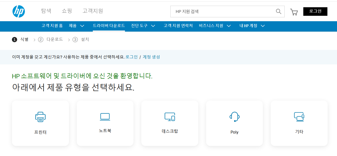 - HP 공식 사이트 방문